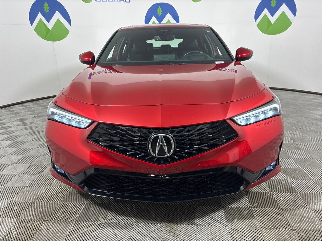 This 2023 Performance Red Pearl Acura Integra A-Spec Tech Package FWD is well equipped and includes these features and benefits: 16 Speakers, 18" Alloy Wheels, 4-Wheel Disc Brakes, ABS brakes, Adaptive suspension, Air Conditioning, Alloy wheels, AM/FM radio: SiriusXM, Apple CarPlay/Android Auto, Auto High-beam Headlights, Auto-dimming Rear-View mirror, Automatic temperature control, Brake assist, Bumpers: body-color, Compass, Delay-off headlights, Driver door bin, Driver vanity mirror, Dual front impact airbags, Dual front side impact airbags, Electronic Stability Control, Emergency communication system: AcuraLink (subscription required), Four wheel independent suspension, Front anti-roll bar, Front Bucket Seats, Front Center Armrest, Front dual zone A/C, Front fog lights, Front reading lights, Fully automatic headlights, Heads-Up Display, Heated door mirrors, Heated Front Bucket Seats, Heated front seats, Illuminated entry, Knee airbag, Lane departure: Lane Keeping Assist System (LKAS) active, Leather Shift Knob, Low tire pressure warning, Memory seat, Occupant sensing airbag, Outside temperature display, Overhead airbag, Overhead console, Panic alarm, Passenger door bin, Passenger vanity mirror, Power door mirrors, Power driver seat, Power moonroof, Power passenger seat, Power steering, Power windows, Radio data system, Radio: ELS Studio 3D Premium Audio System, Rain sensing wipers, Rear anti-roll bar, Rear seat center armrest, Rear side impact airbag, Rear window defroster, Remote keyless entry, Security system, Speed control, Speed-sensing steering, Speed-Sensitive Wipers, Split folding rear seat, Spoiler, Steering wheel mounted audio controls, Suede-Trimmed Seating Surfaces w/Exclusive Stitch, Tachometer, Telescoping steering wheel, Tilt steering wheel, Traction control, Trip computer, Turn signal indicator mirrors, and Variably intermittent wipers.