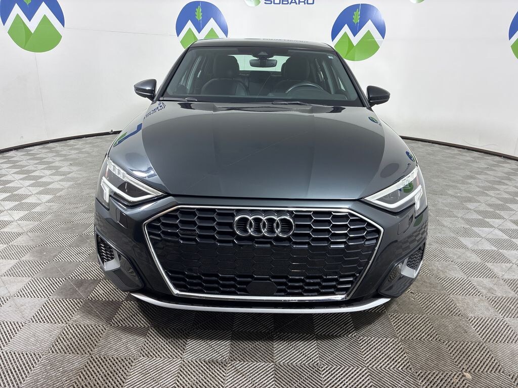 This 2023 Gray Metallic Audi A3 40 Premium Plus AWD is well equipped and includes these features and benefits: Convenience Package (Alarm System w/Motion Sensor, Audi Advanced Key, Audi Side Assist, Auto-Dimming Interior Mirror w/Compass, Auto-Dimming Power Folding Exterior Mirrors, Memory for Driver's Seat, Park Assist, SiriusXM w/360L, and Wireless Phone Charging Pad), LED Interior Lighting Plus Package, Premium Plus Package (Adaptive Cruise Assist w/Lane Guidance and Agate Gray Fine Grain Birch Wood Inlay), quattro, Black Leather, 4-Wheel Disc Brakes, 6 Speakers, ABS brakes, Air Conditioning, Alloy wheels, AM/FM radio, Audi Beam Rings, Audi First Aid Kit (DISC), Audi Guard All-Weather Floor Mats, Auto High-beam Headlights, Automatic temperature control, Brake assist, Bumpers: body-color, Delay-off headlights, Driver door bin, Driver vanity mirror, Dual front impact airbags, Dual front side impact airbags, Electronic Stability Control, Emergency communication system, Exterior Parking Camera Rear, Four wheel independent suspension, Front anti-roll bar, Front Bucket Seats, Front Center Armrest, Front dual zone A/C, Front reading lights, Fully automatic headlights, Heated door mirrors, Heated Front Bucket Seats, Heated front seats, Illuminated entry, Knee airbag, Leather Seating Surfaces, Leather steering wheel, Low tire pressure warning, Occupant sensing airbag, Outside temperature display, Overhead airbag, Overhead console, Panic alarm, Passenger door bin, Passenger vanity mirror, Power door mirrors, Power driver seat, Power moonroof, Power passenger seat, Power steering, Power windows, Radio data system, Radio: Audi Sound System, Rain sensing wipers, Rear air conditioning, Rear anti-roll bar, Rear fog lights, Rear reading lights, Rear seat center armrest, Rear side impact airbag, Rear window defroster, Remote keyless entry, Speed control, Speed-sensing steering, Speed-Sensitive Wipers, Split folding rear seat, Steering wheel mounted audio controls, Tachometer, Telescoping steering wheel, Tilt steering wheel, Traction control, Trip computer, Turn signal indicator mirrors, Variably intermittent wipers, and Wheels: 17" 5-Arm Design.