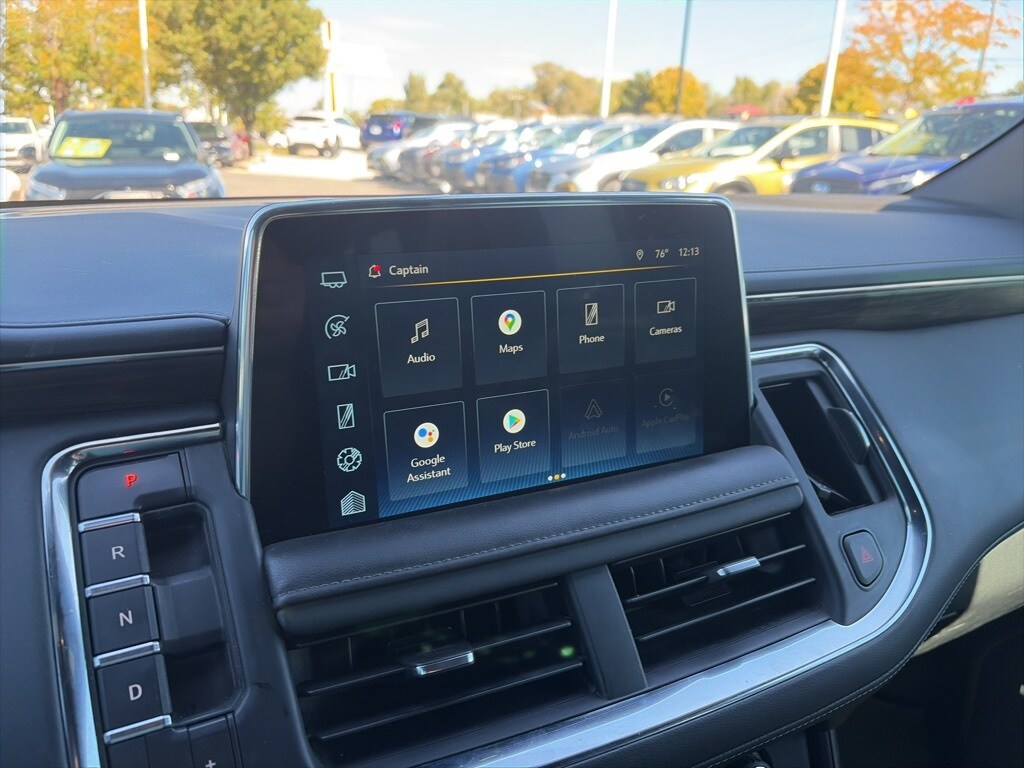 This 2022 Black Chevrolet Suburban LT 4WD is well equipped and includes these features and benefits: Driver Alert Package (Lane Change Alert w/Side Blind Zone Alert and Rear Cross Traffic Alert), License Plate Front Mounting Package, Luxury Package (2nd Row Pwr Release 60/40 Split-Folding Bench Seat, 3rd Row 60/40 Power-Folding Split-Bench, HD Surround Vision, Heated 2nd Row Outboard Seats, Heated Steering Wheel, Memory Settings, Outside Heated Power-Adjustable Mirrors, Power Tilt & Telescopic Steering Column, and Rear Pedestrian Alert), Preferred Equipment Group 1LT (10-Way Power Driver & Passenger Seat Adjusters, 1st & 2nd Row Color-Keyed Carpeted Floor Mats, Auto-Dimming Inside Rear-View Mirror, Automatic Stop/Start, Bose 9-Speaker Stereo Audio System Feature, Bright Front & Rear Door Sill Plates, Color-Keyed Carpeting Floor Covering, Driver & Front Outboard Passenger Airbags, Enhanced Driver Information Center, Floor Console w/Storage Area, Front & Rear Park Assist, Hands-Free Rear Power Programmable Liftgate, Heated Driver & Front Passenger Seats, Infotainment Display, Leather-Wrapped Steering Wheel, LED Daytime Running Lamps, Memory Settings For Driver, Remote Start, SiriusXM Radio w/360L, Start/Stop System Disable Button, Universal Home Remote, and Wireless Charging), 3.23 Rear Axle Ratio, 3rd row seats: split-bench, 4-Wheel Disc Brakes, 9 Speakers, ABS brakes, Air Conditioning, Alloy wheels, AM/FM radio: SiriusXM with 360L, Apple CarPlay/Android Auto, Auto High-beam Headlights, Auto-dimming Rear-View mirror, Automatic temperature control, Brake assist, Bumpers: body-color, Compass, Delay-off headlights, Driver door bin, Driver vanity mirror, Dual front impact airbags, Dual front side impact airbags, Electronic Stability Control, Emergency communication system: OnStar and Chevrolet connected services capable, Four wheel independent suspension, Front & Rear Black Bowtie Emblems (LPO), Front anti-roll bar, Front Bucket Seats, Front Center Armrest, Front dual zone A/C, Front reading lights, Fully automatic headlights, Garage door transmitter, Heated door mirrors, Heated front seats, Illuminated entry, Leather steering wheel, Leather-Appointed Seating, Low tire pressure warning, Memory seat, Navigation System, Not Equipped w/Front & Rear Park Assist, Not Equipped w/Steering Column Lock, Occupant sensing airbag, Outside temperature display, Overhead airbag, Overhead console, Panic alarm, Passenger door bin, Passenger vanity mirror, Power door mirrors, Power driver seat, Power Liftgate, Power passenger seat, Power steering, Power windows, Premium audio system: Chevrolet Infotainment 3 Premium, Premium Smooth Ride Suspension, Radio: Chevrolet Infotainment 3 Premium System, Rain sensing wipers, Rear air conditioning, Rear anti-roll bar, Rear reading lights, Rear seat center armrest, Rear window defroster, Rear window wiper, Remote keyless entry, Roof rack: rails only, Security system, Speed control, Speed-sensing steering, Split folding rear seat, Spoiler, Steering wheel mounted audio controls, Tachometer, Telescoping steering wheel, Tilt steering wheel, Traction control, Trip computer, Variably intermittent wipers, Voltmeter, and Wheels: 18" x 8.5" Bright Silver Painted Aluminum.