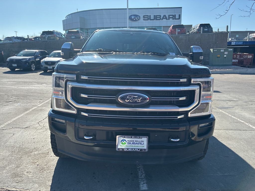 This 2021 Black Ford F-350SD Platinum 4WD is well equipped and includes these features and benefits: 5th Wheel/Gooseneck Hitch Prep Package, 4WD, 10 Speakers, 110V/400W Outlet, 3.55 Axle Ratio, 3.73 Axle Ratio, 397 Amp Alternator, 4-Wheel Disc Brakes, ABS brakes, Adjustable pedals, Air Conditioning, Alloy wheels, AM/FM radio: SiriusXM, Auto High-beam Headlights, Auto-dimming Rear-View mirror, Automatic temperature control, Brake assist, Compass, Delay-off headlights, Driver door bin, Driver vanity mirror, Dual front impact airbags, Dual front side impact airbags, Electronic Stability Control, Emergency communication system: SYNC 3 911 Assist, Engine Block Heater, Exterior Parking Camera Rear, Flow-Through Console, Front & Rear Wheel Well Liners (Pre-Installed), Front anti-roll bar, Front Bucket Seats, Front Center Armrest, Front dual zone A/C, Front fog lights, Front reading lights, Fully automatic headlights, Heated door mirrors, Illuminated entry, Leather steering wheel, Low tire pressure warning, Outside temperature display, Overhead airbag, Overhead console, Panic alarm, Passenger door bin, Passenger vanity mirror, Power door mirrors, Power driver seat, Power passenger seat, Power steering, Power windows, Radio data system, Radio: B&O System by Bang & Olufsen, Rapid-Heat Supplemental Cab Heater, Rear Parking Sensors, Rear reading lights, Rear seat center armrest, Rear step bumper, Rear window defroster, Remote keyless entry, Security system, SiriusXM Radio, Speed control, Split folding rear seat, Steering wheel mounted audio controls, SYNC 3 Communications & Entertainment System, Tachometer, Telescoping steering wheel, Tilt steering wheel, Traction control, Trip computer, Turn signal indicator mirrors, Twin Panel Power Moonroof, Upfitter Switches (6), and Variably intermittent wipers.