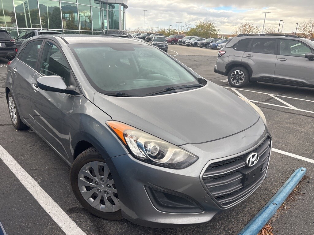 This 2017 Galactic Gray Hyundai Elantra GT Base FWD is well equipped and includes these features and benefits: Option Group 01, 16" x 6.5J Steel Wheels w/Covers, 4-Wheel Disc Brakes, 6 Speakers, ABS brakes, Air Conditioning, AM/FM radio, Brake assist, Bumpers: body-color, CD player, Delay-off headlights, Driver door bin, Driver vanity mirror, Dual front impact airbags, Dual front side impact airbags, Electronic Stability Control, Front anti-roll bar, Front Bucket Seats, Front Center Armrest, Front reading lights, Front wheel independent suspension, Heated door mirrors, Illuminated entry, Knee airbag, Low tire pressure warning, Occupant sensing airbag, Outside temperature display, Overhead airbag, Overhead console, Panic alarm, Passenger door bin, Passenger vanity mirror, Power door mirrors, Power steering, Power windows, Premium Cloth Seating Surfaces, Radio: AM/FM/SiriusXM/CD/MP3 Audio System, Rear anti-roll bar, Rear reading lights, Rear seat center armrest, Rear window defroster, Rear window wiper, Remote keyless entry, Security system, Speed control, Speed-sensing steering, Split folding rear seat, Spoiler, Steering wheel mounted audio controls, Tachometer, Telescoping steering wheel, Tilt steering wheel, Traction control, Trip computer, and Variably intermittent wipers.