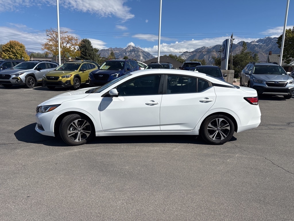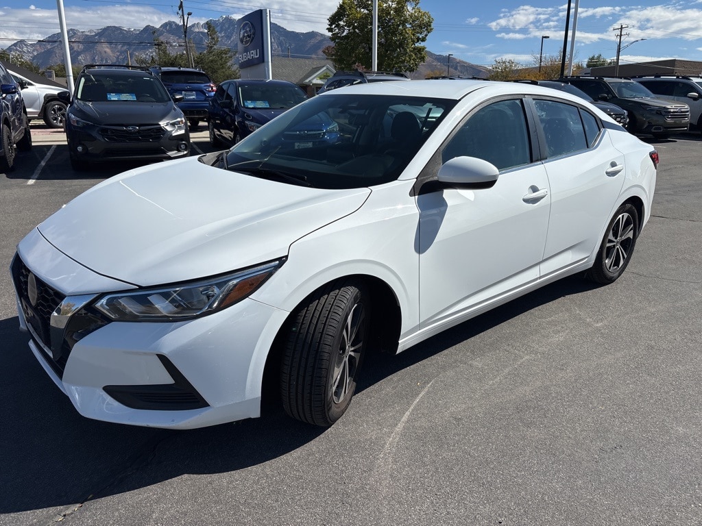 This 2021 Fresh Powder Nissan Sentra SV FWD is well equipped and includes these features and benefits: CVT with Xtronic, Charcoal Cloth, 16" Alloy Wheels, 4-Wheel Disc Brakes, 6 Speakers, ABS brakes, Air Conditioning, Alloy wheels, AM/FM radio: SiriusXM, Auto High-beam Headlights, Automatic temperature control, Blind Spot Warning, Brake assist, Bumpers: body-color, Carpeted Floor Mats w/Trunk Mat, Delay-off headlights, Driver door bin, Driver vanity mirror, Dual front impact airbags, Dual front side impact airbags, Electronic Stability Control, Four wheel independent suspension, Front anti-roll bar, Front Bucket Seats, Front Center Armrest, Front dual zone A/C, Front reading lights, Fully automatic headlights, Heated door mirrors, Illuminated entry, Knee airbag, Low tire pressure warning, NissanConnect featuring Apple CarPlay and Android Auto, Occupant sensing airbag, Outside temperature display, Overhead airbag, Overhead console, Panic alarm, Passenger door bin, Passenger vanity mirror, Power door mirrors, Power steering, Power windows, Radio data system, Radio: AM/FM w/RDS/MP3/Aux-In, Rear anti-roll bar, Rear Parking Sensors, Rear seat center armrest, Rear side impact airbag, Rear window defroster, Remote keyless entry, Security system, Speed control, Speed-sensing steering, Split folding rear seat, Steering wheel mounted audio controls, Tachometer, Telescoping steering wheel, Tilt steering wheel, Traction control, Trip computer, Upgraded Cloth Seat Trim, and Variably intermittent wipers.