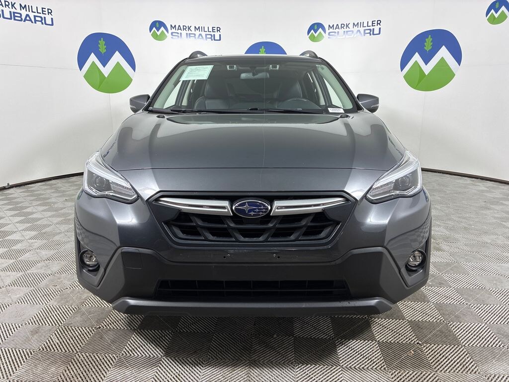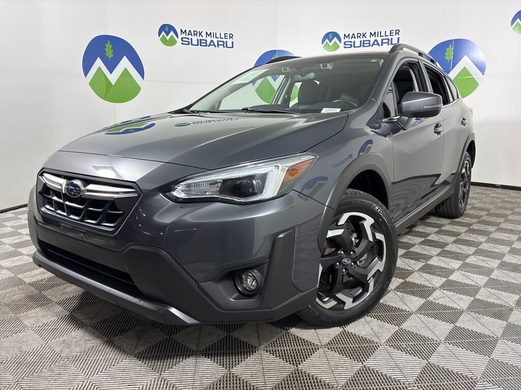 This 2023 Magnetite Gray Metallic Subaru Crosstrek Limited AWD is well equipped and includes these features and benefits: Moonroof Package (Power Moonroof), Subaru Certified Pre-Owned Certified, 3.70 Axle Ratio, 4-Wheel Disc Brakes, 6 Speakers, ABS brakes, Air Conditioning, All-Weather Floor Liners, Alloy wheels, AM/FM radio: SiriusXM, Anti-whiplash front head restraints, Auto High-beam Headlights, Automatic temperature control, Brake assist, Bumpers: body-color, CD player, Driver door bin, Driver vanity mirror, Dual front impact airbags, Dual front side impact airbags, Electronic Stability Control, Emergency communication system: STARLINK Safety and Security (Subscription Required), Exterior Parking Camera Rear, Four wheel independent suspension, Front anti-roll bar, Front Bucket Seats, Front Center Armrest, Front fog lights, Front reading lights, Fully automatic headlights, Heated door mirrors, Heated Front Bucket Seats, Heated front seats, Illuminated entry, Knee airbag, Leather-Trimmed Upholstery, Low tire pressure warning, Occupant sensing airbag, Outside temperature display, Overhead airbag, Overhead console, Panic alarm, Passenger door bin, Passenger vanity mirror, Power door mirrors, Power driver seat, Power steering, Power windows, Radio data system, Radio: Subaru STARLINK 8.0" Multimedia Plus System, Rear anti-roll bar, Rear Bumper Cover, Rear seat center armrest, Rear window defroster, Rear window wiper, Remote keyless entry, Security system, Speed control, Speed-sensing steering, Split folding rear seat, Spoiler, STARLINK/Apple CarPlay/Android Auto, Steering wheel mounted audio controls, Tachometer, Telescoping steering wheel, Tilt steering wheel, Traction control, Trip computer, Turn signal indicator mirrors, Variably intermittent wipers, and Wheels: 18" x 7.0J Alum Alloy Blk w/Machine Finish.