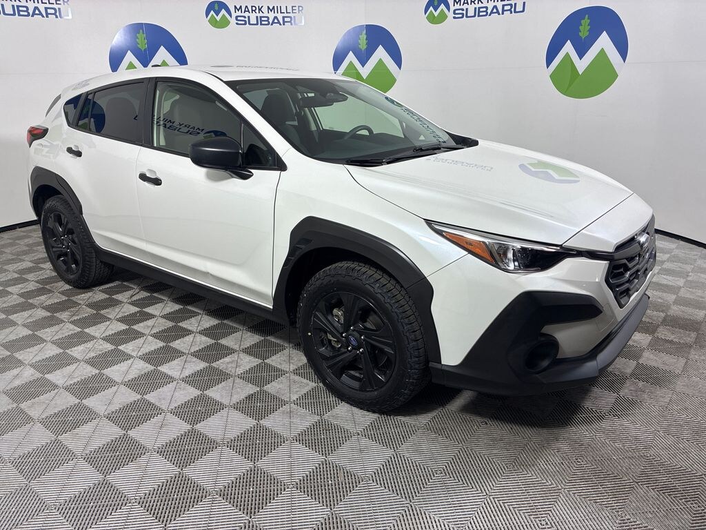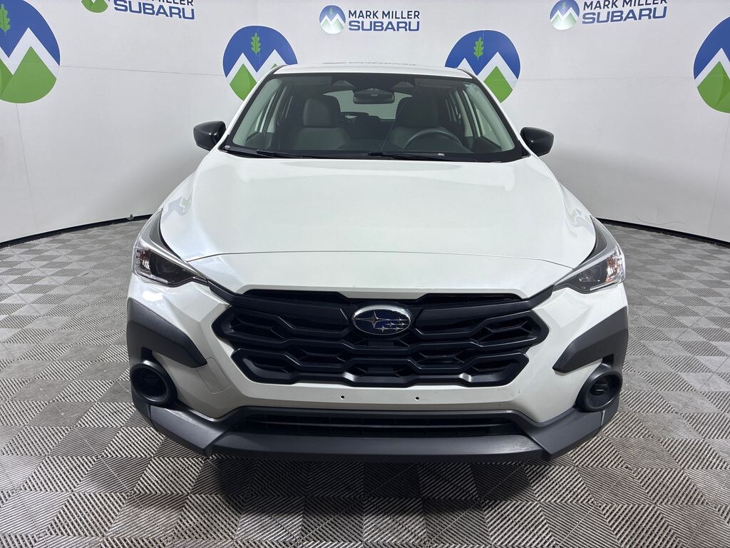 This 2024 Crystal White Pearl Subaru Crosstrek Base AWD is well equipped and includes these features and benefits: Standard Model, 3.90 Axle Ratio, 4 Speakers, 4-Wheel Disc Brakes, ABS brakes, Air Conditioning, Alloy wheels, AM/FM radio: SiriusXM, Anti-whiplash front head restraints, Auto High-beam Headlights, Automatic temperature control, Brake assist, Bumpers: body-color, Cloth Upholstery, Driver door bin, Driver vanity mirror, Dual front impact airbags, Dual front side impact airbags, Electronic Stability Control, Exterior Parking Camera Rear, Four wheel independent suspension, Front anti-roll bar, Front Bucket Seats, Front Center Armrest, Front dual zone A/C, Front reading lights, Fully automatic headlights, Illuminated entry, Knee airbag, Low tire pressure warning, Occupant sensing airbag, Outside temperature display, Overhead airbag, Overhead console, Panic alarm, Passenger door bin, Passenger vanity mirror, Power door mirrors, Power steering, Power windows, Radio data system, Radio: Subaru STARLINK Dual 7.0" Multimedia System, Rear anti-roll bar, Rear window defroster, Rear window wiper, Remote keyless entry, Security system, Speed control, Speed-sensing steering, Split folding rear seat, Spoiler, STARLINK/Apple CarPlay/Android Auto, Steering wheel mounted audio controls, Tachometer, Telescoping steering wheel, Tilt steering wheel, Traction control, Trip computer, Variably intermittent wipers, and Wheels: 17" x 7.0J Dark Gray Aluminum Alloy.
