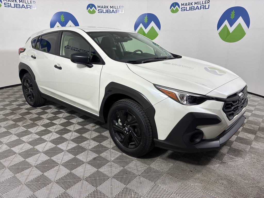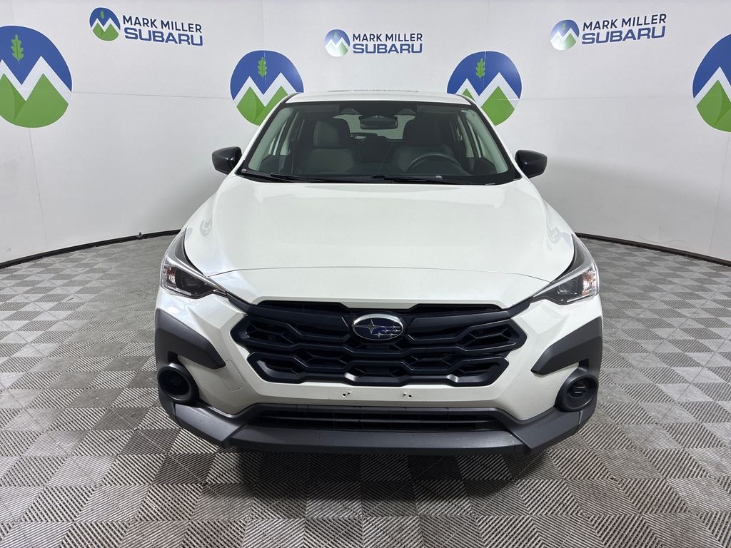 This 2024 Crystal White Pearl Subaru Crosstrek Base AWD is well equipped and includes these features and benefits: Standard Model, 3.90 Axle Ratio, 4 Speakers, 4-Wheel Disc Brakes, ABS brakes, Air Conditioning, Alloy wheels, AM/FM radio: SiriusXM, Anti-whiplash front head restraints, Auto High-beam Headlights, Automatic temperature control, Brake assist, Bumpers: body-color, Cloth Upholstery, Driver door bin, Driver vanity mirror, Dual front impact airbags, Dual front side impact airbags, Electronic Stability Control, Exterior Parking Camera Rear, Four wheel independent suspension, Front anti-roll bar, Front Bucket Seats, Front Center Armrest, Front dual zone A/C, Front reading lights, Fully automatic headlights, Illuminated entry, Knee airbag, Low tire pressure warning, Occupant sensing airbag, Outside temperature display, Overhead airbag, Overhead console, Panic alarm, Passenger door bin, Passenger vanity mirror, Power door mirrors, Power steering, Power windows, Radio data system, Radio: Subaru STARLINK Dual 7.0" Multimedia System, Rear anti-roll bar, Rear window defroster, Rear window wiper, Remote keyless entry, Security system, Speed control, Speed-sensing steering, Split folding rear seat, Spoiler, STARLINK/Apple CarPlay/Android Auto, Steering wheel mounted audio controls, Tachometer, Telescoping steering wheel, Tilt steering wheel, Traction control, Trip computer, Variably intermittent wipers, and Wheels: 17" x 7.0J Dark Gray Aluminum Alloy.