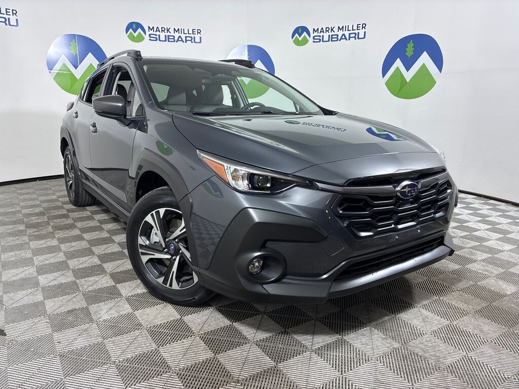 This 2024 Magnetite Gray Metallic Subaru Crosstrek Premium AWD is well equipped and includes these features and benefits: Standard Model, Subaru Certified Pre-Owned Certified, 2nd Row Sunshade, 3.90 Axle Ratio, 4-Wheel Disc Brakes, 6 Speakers, ABS brakes, Air Conditioning, Alloy wheels, AM/FM radio: SiriusXM, Anti-whiplash front head restraints, Auto High-beam Headlights, Automatic temperature control, Brake assist, Bumpers: body-color, Cargo Net, Driver door bin, Driver vanity mirror, Dual front impact airbags, Dual front side impact airbags, Electronic Stability Control, Emergency communication system: STARLINK Safety and Security (Subscription Required), Exterior Parking Camera Rear, Four wheel independent suspension, Front anti-roll bar, Front Bucket Seats, Front Center Armrest, Front dual zone A/C, Front fog lights, Front reading lights, Fully automatic headlights, Illuminated entry, Knee airbag, LED Upgrade, Low tire pressure warning, Occupant sensing airbag, Outside temperature display, Overhead airbag, Overhead console, Panic alarm, Passenger door bin, Passenger vanity mirror, Power door mirrors, Power steering, Power windows, Premium Cloth Upholstery, Radio data system, Radio: Subaru STARLINK 11.6" Multimedia Plus Sys, Rear anti-roll bar, Rear Bumper Cover, Rear seat center armrest, Rear Seatback Protector, Rear window defroster, Rear window wiper, Remote keyless entry, Security system, Speed control, Speed-sensing steering, Splash Guards, Split folding rear seat, Spoiler, STARLINK/Apple CarPlay/Android Auto, Steering wheel mounted audio controls, Sunshade - Windshield, Tachometer, Telescoping steering wheel, Tilt steering wheel, Traction control, Trip computer, Turn signal indicator mirrors, Variably intermittent wipers, and Wheels: 17" x 7.0J Dark Gray Aluminum Alloy.