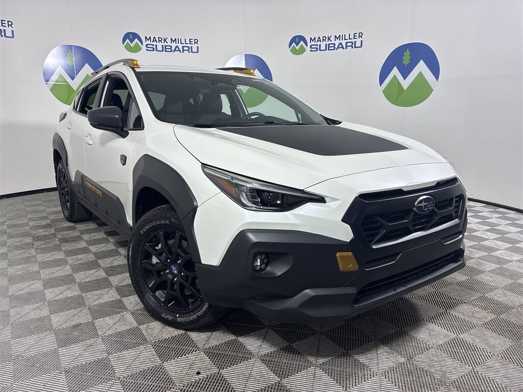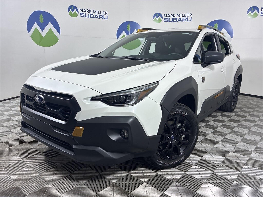 This 2025 Crystal White Pearl Subaru Crosstrek Wilderness AWD is well equipped and includes these features and benefits: Crosstrek Mirror Package (Auto-Dimming Exterior Mirror w/Approach Light and Auto-Dimming Mirror w/Compass & HomeLink), Standard Model, Subaru Certified Pre-Owned Certified, 4-Wheel Disc Brakes, 6 Speakers, ABS brakes, Air Conditioning, Alloy wheels, AM/FM radio: SiriusXM, Anti-whiplash front head restraints, Auto High-beam Headlights, Automatic temperature control, Brake assist, Bumpers: body-color, Driver door bin, Driver vanity mirror, Dual front impact airbags, Dual front side impact airbags, Electronic Stability Control, Emergency communication system, Exterior Parking Camera Rear, Four wheel independent suspension, Front anti-roll bar, Front Bucket Seats, Front Center Armrest, Front dual zone A/C, Front fog lights, Front reading lights, Fully automatic headlights, Heated door mirrors, Heated Front Bucket Seats, Heated front seats, Illuminated entry, Knee airbag, Leather Shift Knob, Leather steering wheel, LED Upgrade, Low tire pressure warning, Occupant sensing airbag, Outside temperature display, Overhead airbag, Overhead console, Panic alarm, Passenger door bin, Passenger vanity mirror, Power door mirrors, Power steering, Power windows, Radio data system, Radio: Subaru 11.6" Multimedia Plus System, Rear anti-roll bar, Rear Bumper Cover - Wilderness, Rear seat center armrest, Rear window defroster, Rear window wiper, Remote keyless entry, Security system, Speed control, Speed-sensing steering, Splash Guards - Wilderness, Split folding rear seat, Spoiler, Steering wheel mounted audio controls, Tachometer, Telescoping steering wheel, Tilt steering wheel, Traction control, Trip computer, Turn signal indicator mirrors, Variably intermittent wipers, Wheels: 17" x 7.0" J Matte Black Aluminum-Alloy, and Wilderness StarTex Upholstery.