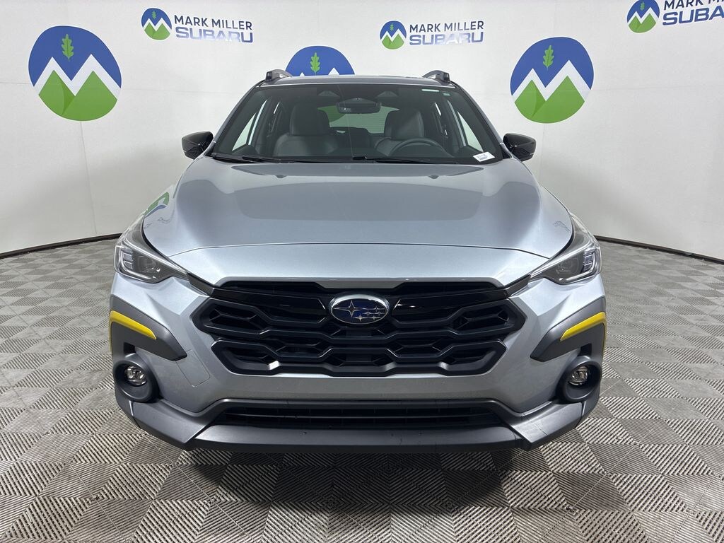 This 2025 Ice Silver Metallic Subaru Crosstrek Sport AWD is well equipped and includes these features and benefits: BSD/RCTA & Power Driver Seat & Power Moonroof (10-Way Power Driver's Seat, Blind Spot Detection (BSD), Power Moonroof, and Rear Cross-Traffic Alert (RCTA) System), Crosstrek Mirror Package (Auto-Dimming Exterior Mirror w/Approach Light and Auto-Dimming Mirror w/Compass & HomeLink), Subaru Certified Pre-Owned Certified, 4-Wheel Disc Brakes, 6 Speakers, ABS brakes, Air Conditioning, All-Weather Floor Liners, Alloy wheels, AM/FM radio: SiriusXM, Anti-whiplash front head restraints, Auto High-beam Headlights, Automatic temperature control, Brake assist, Bumpers: body-color, Driver door bin, Driver vanity mirror, Dual front impact airbags, Dual front side impact airbags, Electronic Stability Control, Emergency communication system, Exterior Parking Camera Rear, Four wheel independent suspension, Front anti-roll bar, Front Bucket Seats, Front Center Armrest, Front dual zone A/C, Front fog lights, Front reading lights, Fully automatic headlights, Heated door mirrors, Heated Front Bucket Seats, Heated front seats, Illuminated entry, Knee airbag, Leather Shift Knob, Leather steering wheel, Low tire pressure warning, Occupant sensing airbag, Outside temperature display, Overhead airbag, Overhead console, Panic alarm, Passenger door bin, Passenger vanity mirror, Power door mirrors, Power steering, Power windows, Radio data system, Radio: Subaru 11.6" Multimedia Plus System, Rear anti-roll bar, Rear seat center armrest, Rear window defroster, Rear window wiper, Remote keyless entry, Security system, Speed control, Speed-sensing steering, Splash Guards, Split folding rear seat, Spoiler, Sport Cloth Upholstery, Steering wheel mounted audio controls, Tachometer, Telescoping steering wheel, Tilt steering wheel, Traction control, Trip computer, Turn signal indicator mirrors, Variably intermittent wipers, and Wheels: 18" x 7.0" J Dark Gray Aluminum-Alloy.