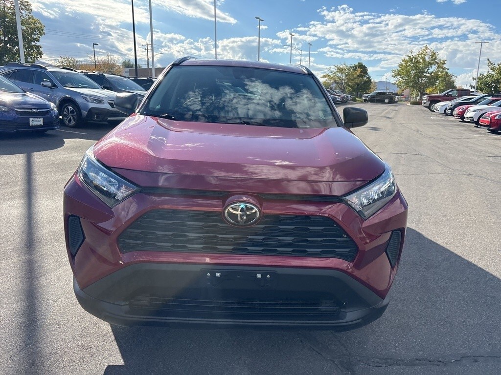 This 2021 Red Toyota RAV4 LE AWD is well equipped and includes these features and benefits: AWD, Ash w/Fabric Seat Trim, 17" Steel Wheels, 4-Wheel Disc Brakes, 6 Speakers, ABS brakes, Air Conditioning, AM/FM radio: SiriusXM, AM/FM Stereo, Apple CarPlay/Android Auto, Auto High-beam Headlights, Axle Ratio: 3.177, Brake assist, Bumpers: body-color, Driver door bin, Driver vanity mirror, Dual front impact airbags, Dual front side impact airbags, Electronic Stability Control, Emergency communication system, Exterior Parking Camera Rear, Fabric Seat Trim, Four wheel independent suspension, Front anti-roll bar, Front Bucket Seats, Front Center Armrest, Front reading lights, Illuminated entry, Knee airbag, Low tire pressure warning, Occupant sensing airbag, Outside temperature display, Overhead airbag, Overhead console, Panic alarm, Passenger door bin, Passenger vanity mirror, Power door mirrors, Power steering, Power windows, Radio data system, Rear anti-roll bar, Rear seat center armrest, Rear window defroster, Rear window wiper, Remote keyless entry, Roof rack: rails only, Speed control, Speed-sensing steering, Split folding rear seat, Spoiler, Steering wheel mounted audio controls, Tachometer, Telescoping steering wheel, Tilt steering wheel, Traction control, and Trip computer.