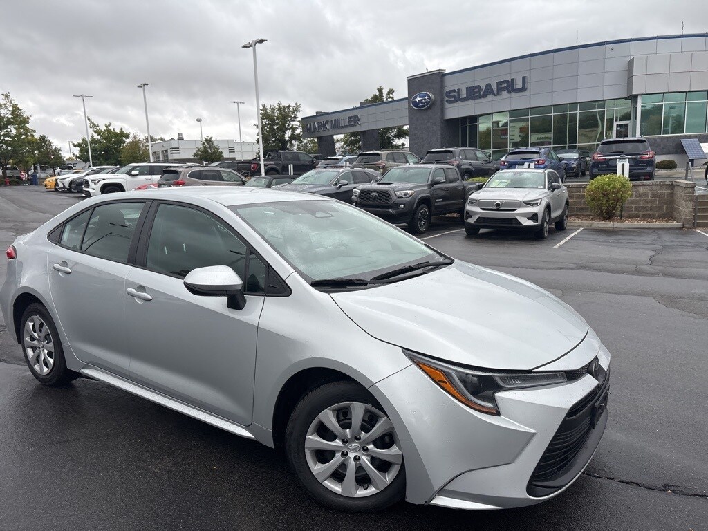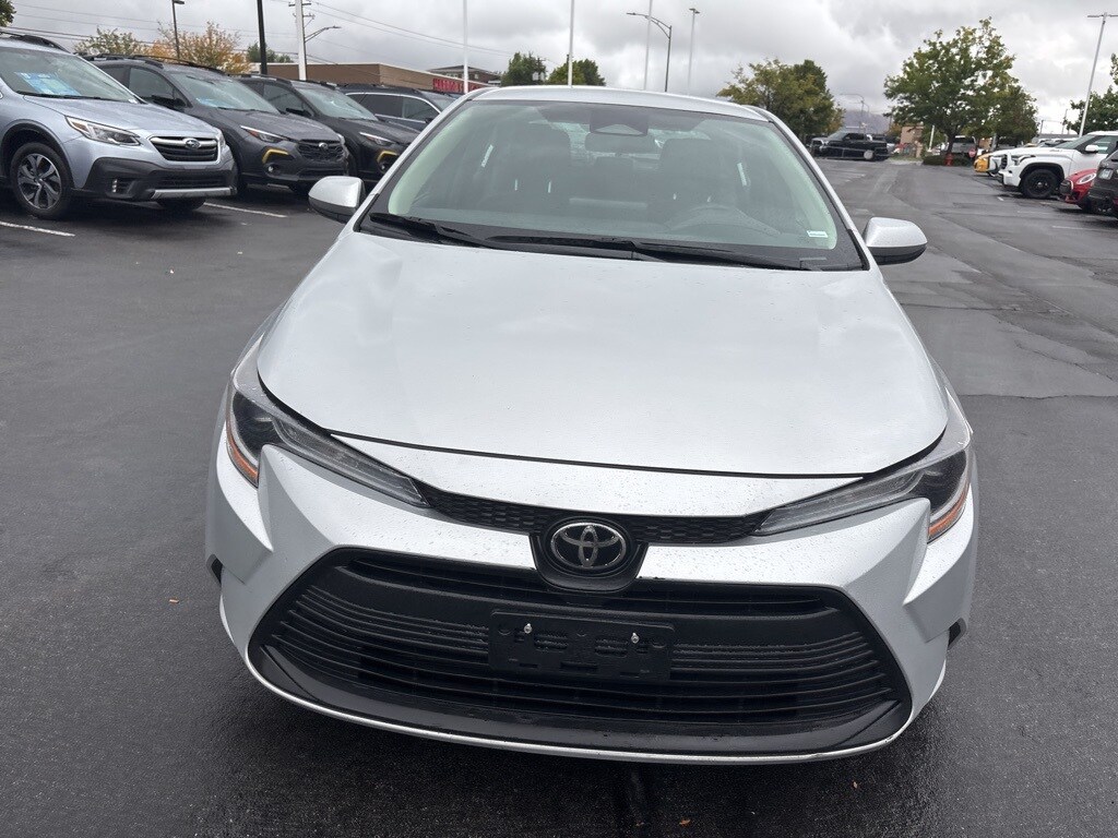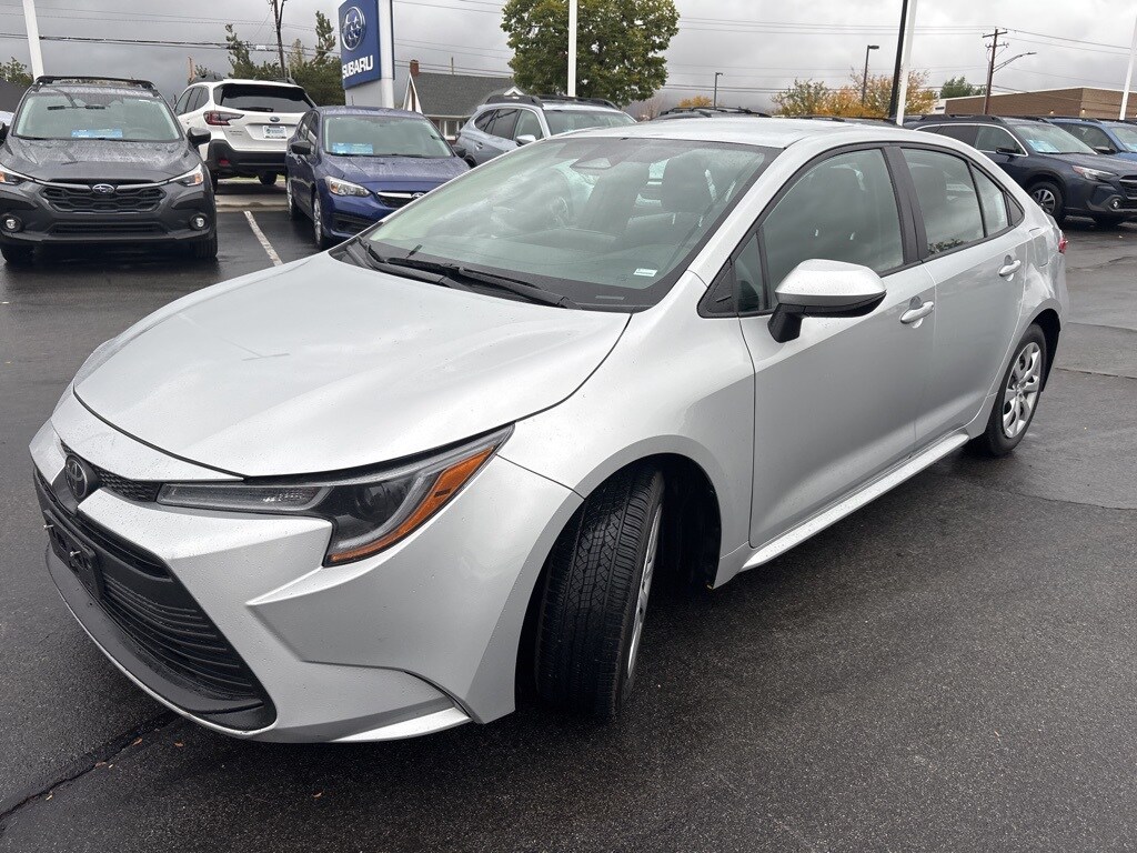 This 2023 Silver Toyota Corolla LE FWD is well equipped and includes these features and benefits: 4-Wheel Disc Brakes, 6 Speakers, ABS brakes, Air Conditioning, AM/FM radio: SiriusXM, Auto High-beam Headlights, Automatic temperature control, Brake assist, Bumpers: body-color, Delay-off headlights, Driver door bin, Driver vanity mirror, Dual front impact airbags, Dual front side impact airbags, Electronic Stability Control, Emergency communication system: Safety Connect (up to 10-year trial subscription), Exterior Parking Camera Rear, Front anti-roll bar, Front Bucket Seats, Front Center Armrest, Front reading lights, Front wheel independent suspension, Fully automatic headlights, Illuminated entry, Knee airbag, Low tire pressure warning, Occupant sensing airbag, Outside temperature display, Overhead airbag, Panic alarm, Passenger door bin, Passenger vanity mirror, Power door mirrors, Power steering, Power windows, Premium Fabric Seat Trim, Radio data system, Radio: 8" Toyota Audio Multimedia, Rear anti-roll bar, Rear seat center armrest, Rear side impact airbag, Rear window defroster, Remote keyless entry, Speed control, Split folding rear seat, Steering wheel mounted audio controls, Tachometer, Telescoping steering wheel, Tilt steering wheel, Traction control, Trip computer, Variably intermittent wipers, and Wheels: 16" Wide Vent Steel.