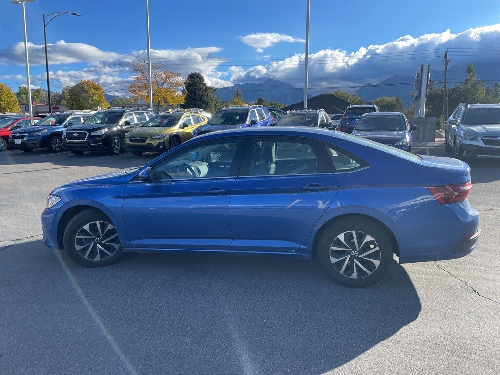 This 2023 Blue Volkswagen Jetta 1.5T S FWD is well equipped and includes these features and benefits: Storm Gray w/Cloth Seat Trim, 4 Speakers, 4-Wheel Disc Brakes, ABS brakes, Air Conditioning, Alloy wheels, AM/FM radio, Brake assist, Bumpers: body-color, Cloth Seat Trim, Delay-off headlights, Driver door bin, Driver vanity mirror, Dual front impact airbags, Dual front side impact airbags, Electronic Stability Control, Emergency communication system: VW Car-Net Safe & Secure 5-year, Exterior Parking Camera Rear, Front anti-roll bar, Front Bucket Seats, Front Center Armrest, Front Comfort Seats, Front wheel independent suspension, Fully automatic headlights, Heated door mirrors, Illuminated entry, Low tire pressure warning, Occupant sensing airbag, Outside temperature display, Overhead airbag, Overhead console, Panic alarm, Passenger door bin, Passenger vanity mirror, Power door mirrors, Power steering, Power windows, Radio data system, Radio: MIB3 Composition Color w/6.5" Touchscreen, Rear anti-roll bar, Rear reading lights, Rear window defroster, Remote keyless entry, Speed control, Speed-sensing steering, Split folding rear seat, Steering wheel mounted audio controls, Tachometer, Telescoping steering wheel, Tilt steering wheel, Traction control, Trip computer, Variably intermittent wipers, and Wheels: 16" 2-Tone Machined Alloy.